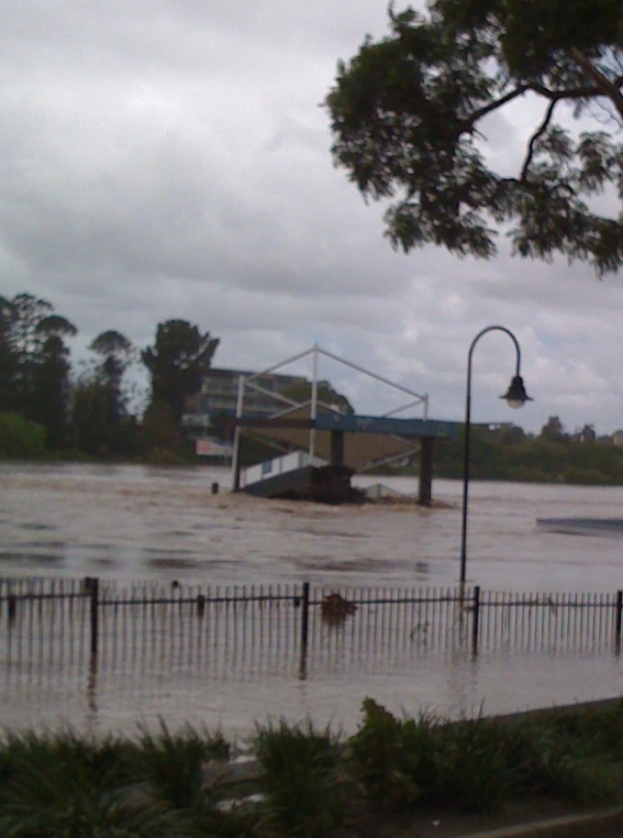 The flood has wrecked a number of Brisbane’s CityCat ferry terminals, including the one below at Toowong, and it may take the Council 18 months to rebuild them (CityCat terminals could take a year and a half to rebuild).