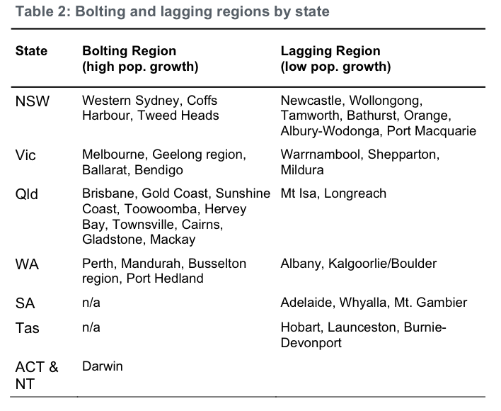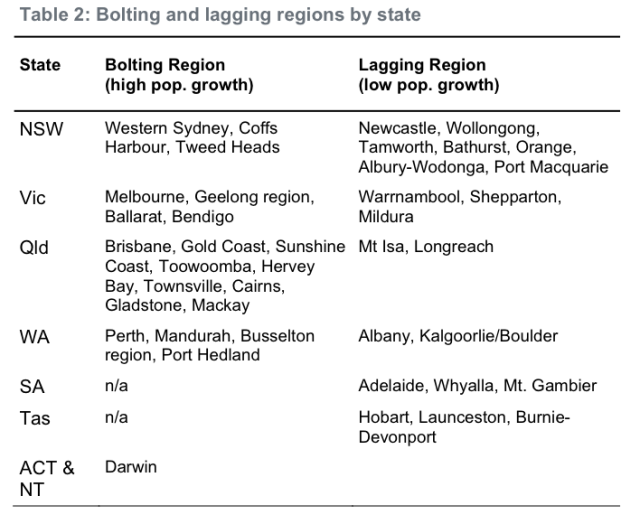 Queensland is leading the country in the number of bolting regions – including SEQ, Hervey Bay, Townsville and Cairns – with only Mt Isa and Longreach lagging behind. Check out this table in the excellent new Grattan Institute report Investing in Regions: Making a Difference:
