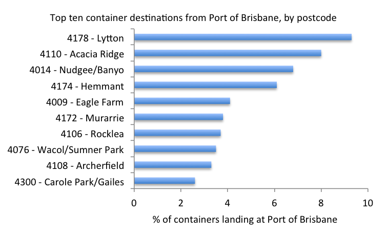 The answer is in a great new data set from the ABS, Experimental Statistics on International Shipping Container Movements: