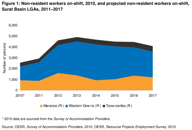 OESR released its latest Surat Basin Population report on Friday, and it shows a big expected jump in fly in-fly out (FIFO) and drive in-drive out (DIDO) workers in the region in 2012 (see figure below).