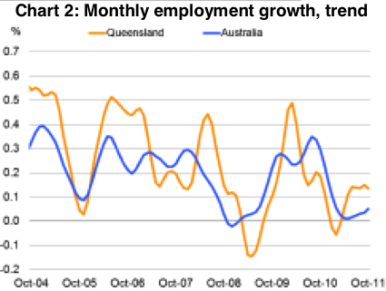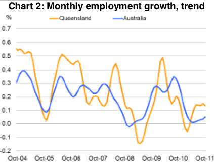 Employment in Queensland has risen by 90,000 employed persons since March 2009, when the last Queensland election was held, so it only has to increase by another 10,000 over the next few months for the Government to be able to enter the next election campaign claiming it has met its promise. This is consistent with the recent rate of employment growth, so I see no problems with achieving this.