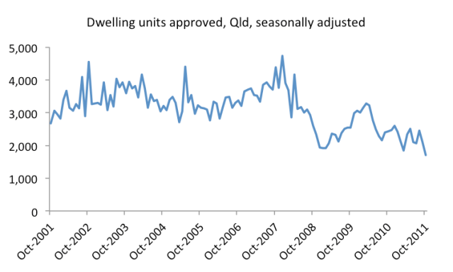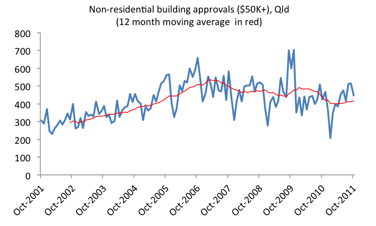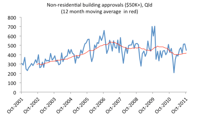 The new ABS building approvals figures are disappointing, suggesting the non-resources part of the economy is sluggish: