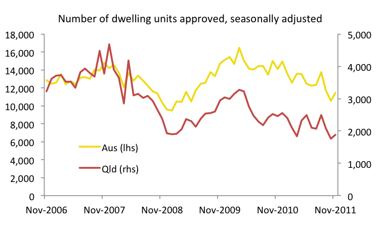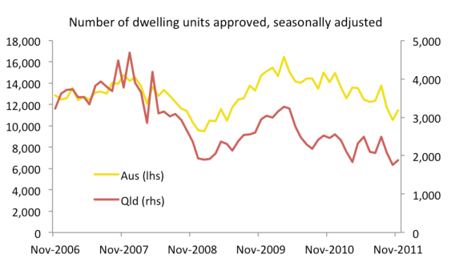 I’m more optimistic than Mr Bloxham, particularly regarding the Queensland economy. Given these data today, and the retail trade data yesterday, I’m very confident Queensland will grow strongly over 2012 even if NSW and Victoria are flat.