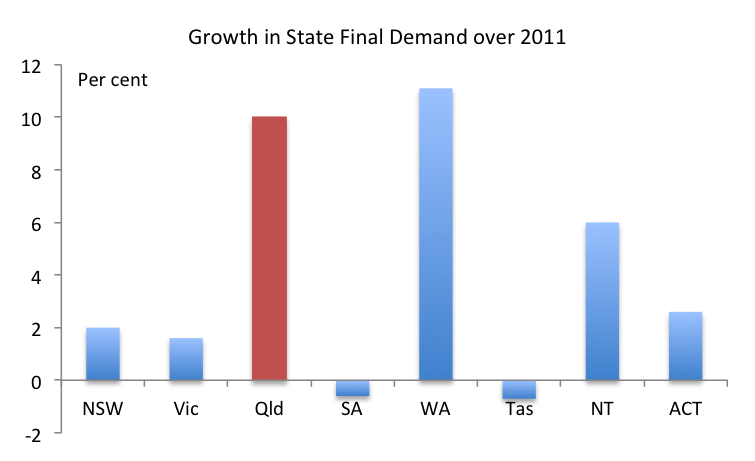 The resources states of Queensland and WA were the heroes of the ABS National Accounts released on Wednesday, with very strong growth in State Final Demand recorded over 2011:
