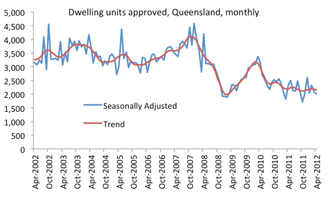 I’d stick to that forecast, given the underlying strength of the Queensland economy, bolstered as it is by massive resources sector investment. In my view, it remains likely that building approvals and dwelling investment will experience a recovery later this year.