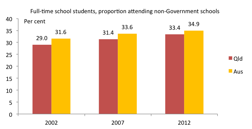 Since 2002, Queensland has grown the fastest with an increase of 39.1 per cent in the number of students attending Non-government schools.