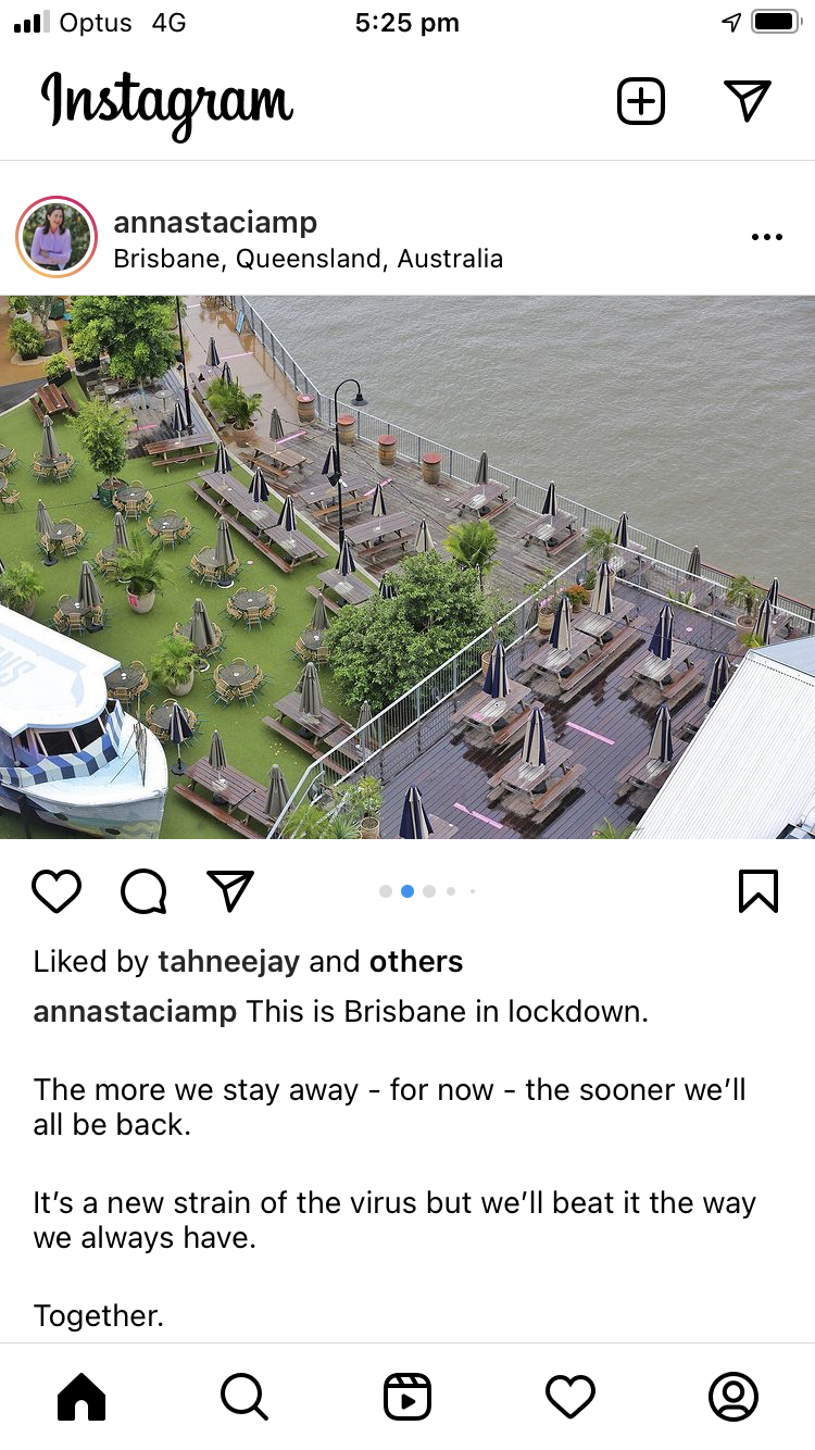 Instagram post from Qld Premier showing how lockdown has shut down Felons Brewery at Howard Smith Wharves