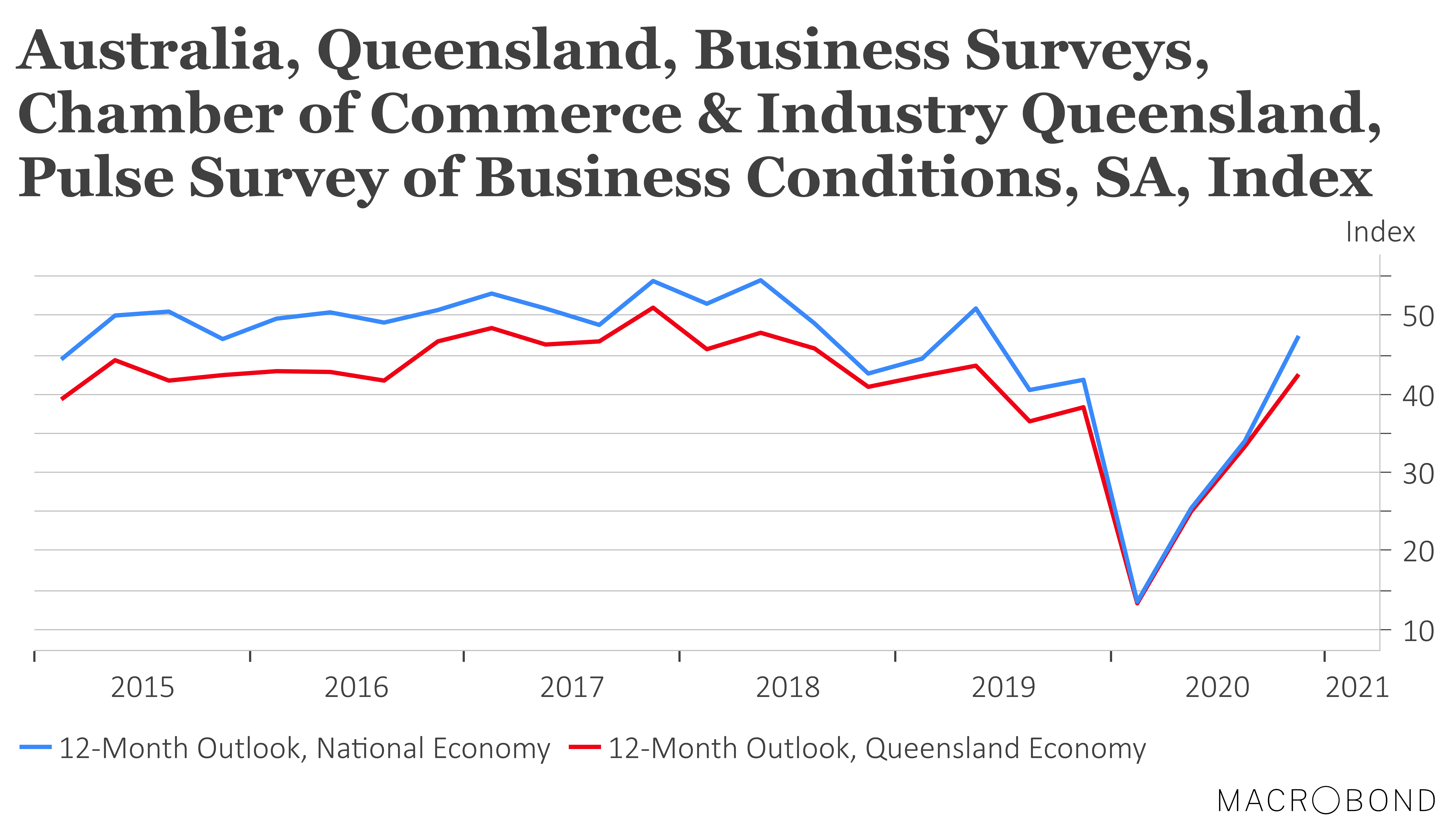 Importantly, the report (on p. 13) also shows that a minority, but apparently a sizable minority, of Queensland businesses remain concerned about the future, and I suspect many businesses are very concerned about what happens when JobKeeper ends in late March:
