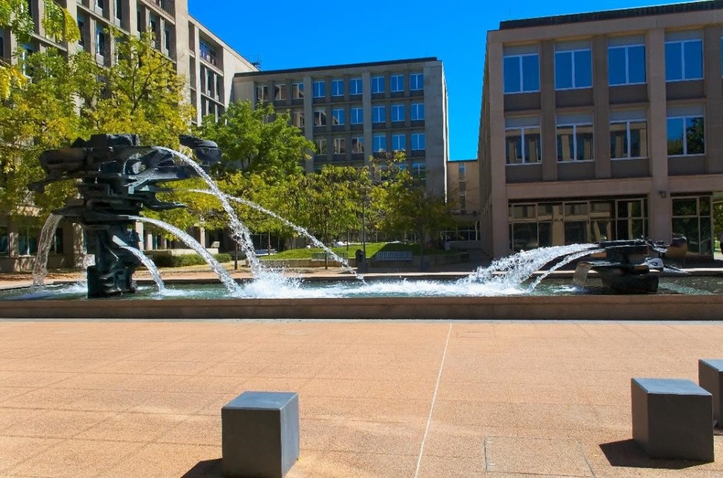 The extraordinary Norma Redpath fountain outside the Treasury building on King Edward Terrace, Canberra.