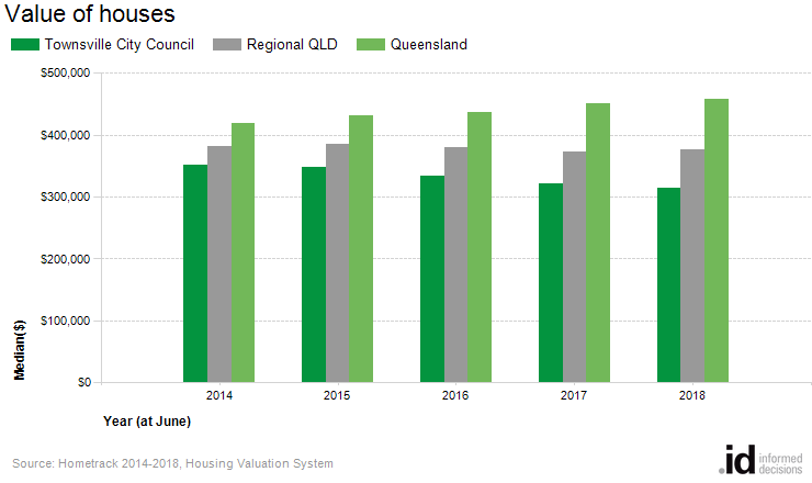 A chart showing declining house prices in Townsville over 2014 to 2018.