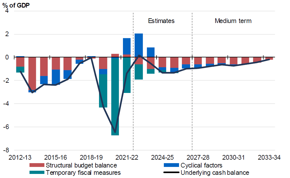 Figure 1. Structural budget balance estimates presented in 2023-24 Australian Government Budget